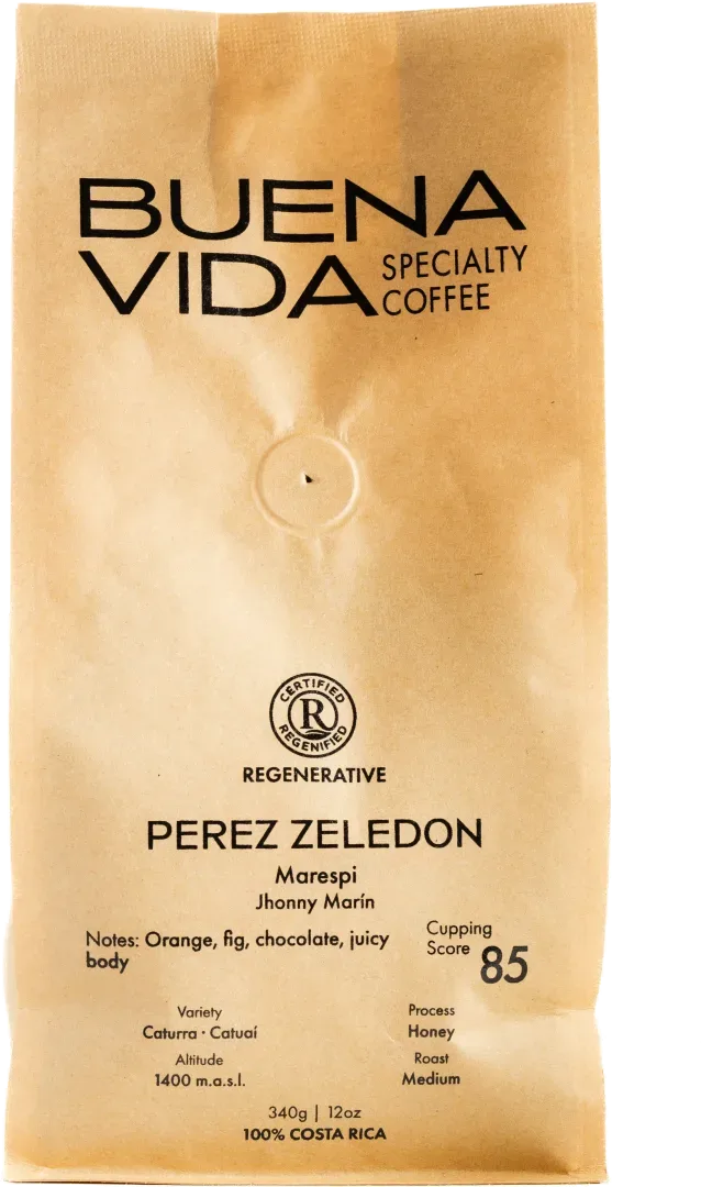 From Costa Rica’s Pérez Zeledón region at 1,400 m.a.s.l., this honey-processed Caturra–Catuaí from Marespi delivers a sweet and vibrant cup, with notes of orange, fig, and chocolate, complemented by a juicy, smooth body.
